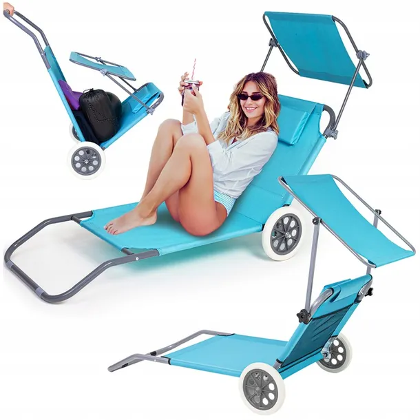 ✅ Kod producenta: Leżak plażowy na kółkach z daszkiem wózek